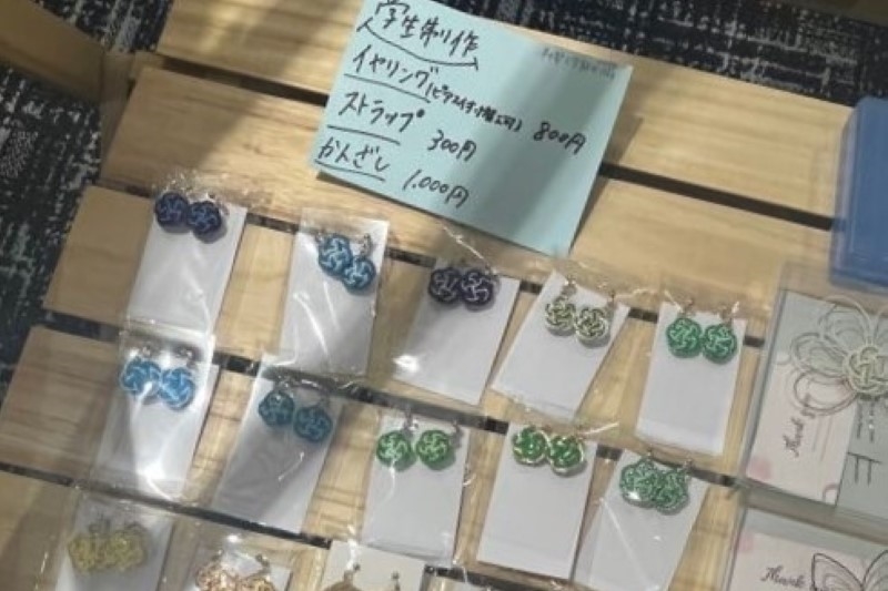 飯田市の伝統工芸・水引を結ぶ体験には多くの方にご参加いただいたほか、ワーキンググループの学生や関島水引店の職人さんが制作したアクセサリーも販売しました。