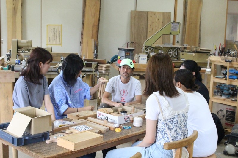 2日目は、住田町木工館において、住田町の木材の端材を使ったウッドチャイム作りにチャレンジしました。