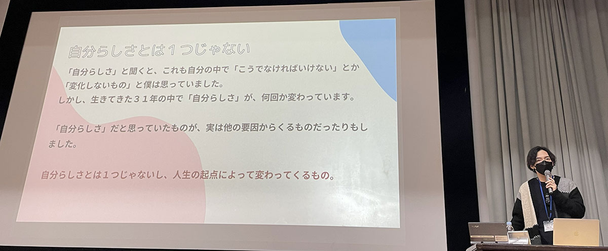 - 「自分らしさ」とは今の自分だけで決まるものではなく、自分が生きてきたこれまでも含めて考えるものだと感じました。木本さんが性別適合手術を受けた後も、女性として生きた過去に葛藤を抱えていたという話は印象的でした。その姿から、自分を知るとは、自分や誰かにとって都合の良い部分だけでなく、迷いや苦しみも含めて自身と向き合うことだと学びました。これからは過去の経験も大切にしながら、自分自身を理解していきたいです。