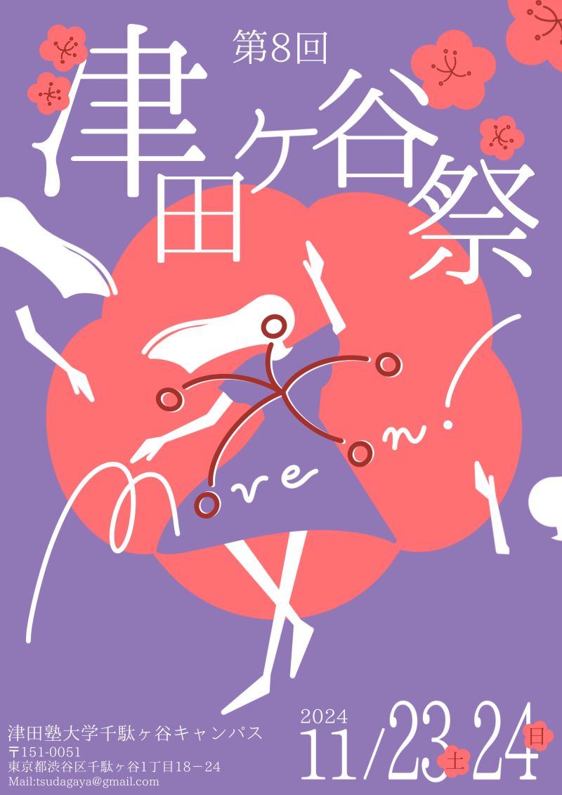 私たち学生が成長し新たなステージに進む”Move on”。過去の困難や挑戦から学び、新しい展開や可能性に向かって前進する”Move on”。津田梅子が本学を興して女子学生の背を押したように、津田ヶ谷祭をすべての人の楽しめる場として、願わくば新たな一歩を得るきっかけとなることを祈り、このテーマとしています。