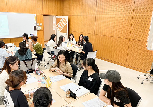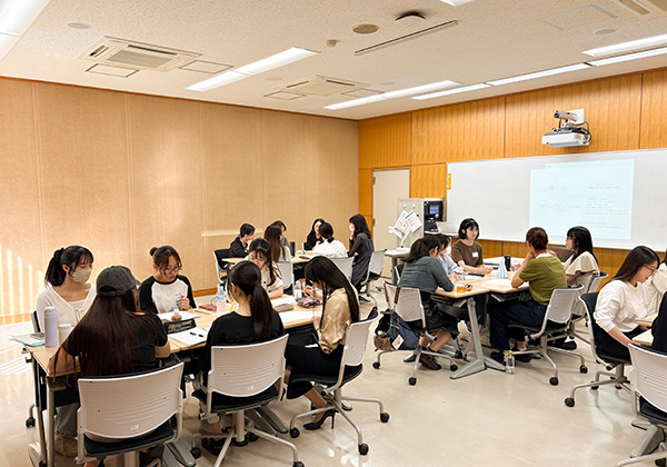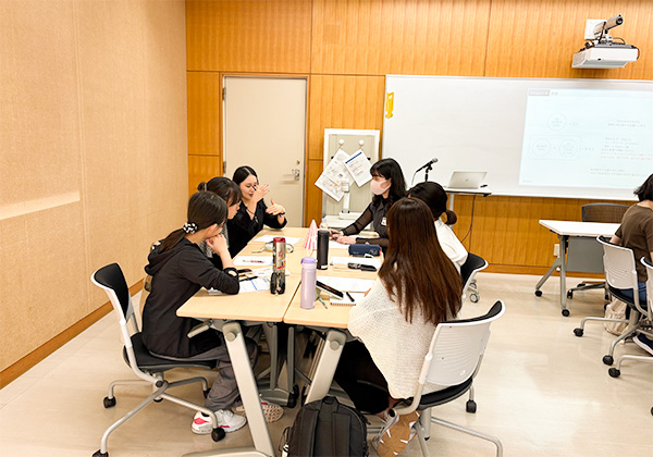 今年は、第二タームの「1,2年生のための就職基礎講座」とのつながりを意識して、第三タームが始まってすぐの9月に開催しました。7月にオンラインで4名の卒業生の講話を聞いた学生たちにとっては、今度は実際に卒業生に会って直接質問をしたり、対話をする機会となりました。このワークショップは、低学年向けのイベントと位置付けていることもあり、まだ明確な進路のイメージを持っていない学生たちを主な対象としています。様々な生き方、様々な職業の先輩たちとの対話を通して視野を広げ、自分らしさについて考えたり、働くことの楽しさを知ってキャリアの解像度を上げることを目指しています。