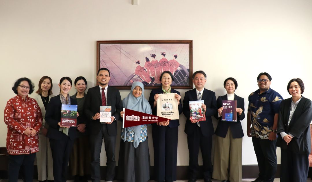 2026年4月6日(月)、本学小平キャンパスに、インドネシアのハサヌディン大学インターナショナルオフィス長のAndi Masyitha Irwan氏、教学・学生担当副学部長Syahrul氏、移民法担当職員のDra. Harniati 氏と、学生交流担当職員Kumara Tungga Dewa氏の計4名が来学しました。本学からは、髙橋学長、菅教学・国際担当副学長、小島学芸学部長、光成国際関係学科准教授、新居国際・学生担当チーフオフィサーと、国際センター職員が対応しました。